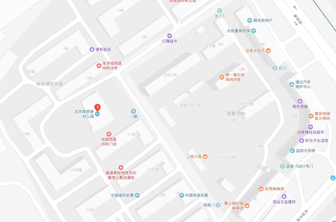 长春新区北京维思德幼儿园(电台街与光谷大街交汇处,轻铁湖光花园小区内);乘车路线:长春站乘轻轨3号线“湖光路”下车